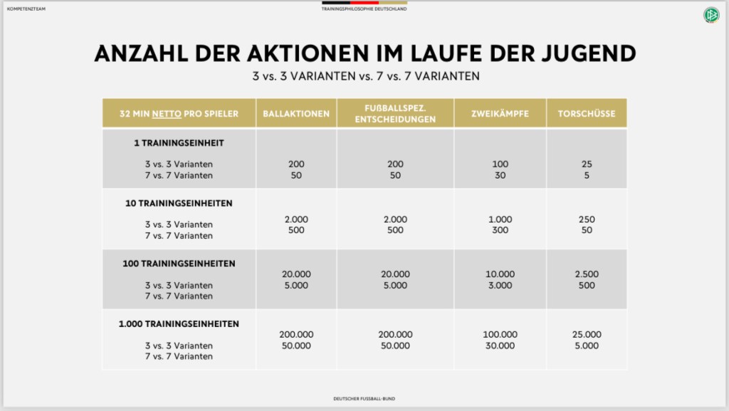 Je kleiner die Gruppe, desto mehr Möglichkeiten haben die Spieler, zum Torabschluss zu kommen. Das sorgt nicht nur für mehr Torchancen im Training, sondern stärkt auch die Abschlussqualität und die Entscheidungsfindung vor dem Tor.